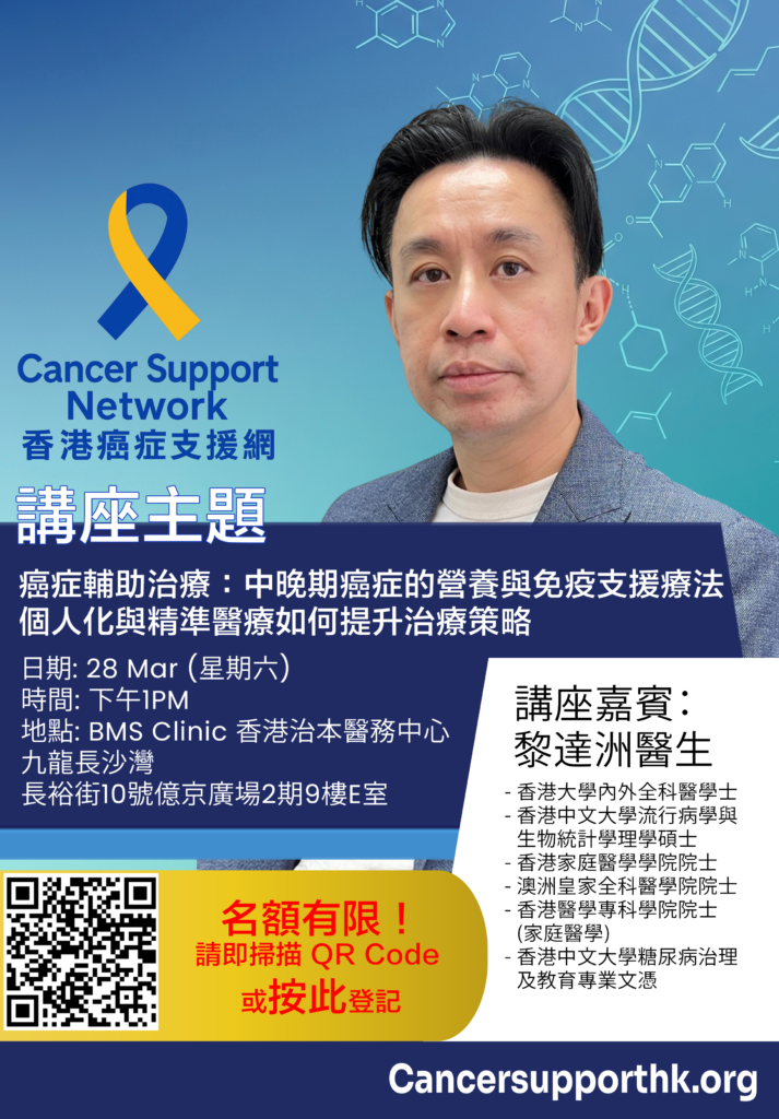 香港抗癌資訊 香港抗癌資訊平台,匯集最新癌症治療與綜合療法的資訊,包括癌症疫苗、免疫治療、高劑量維他命C、營養支持及個人化治療方案, 並提供癌症患者支援服務、康復指引,助您掌握全方位抗癌資源。並且有專人全天候跟進您的個案,現在可以立即與專員聯絡。 免費癌症支援服務 香港癌症支援網為您提供全方位、免費的癌症資訊與專業協助,確保每一位患者與家人都不必獨自面對挑戰。 免費與專人對話 香港主要癌症 更多 香港主要癌症資訊,涵蓋肺癌、乳癌、大腸癌、肝癌及前列腺癌等常見癌症的數據、成因與趨勢,提供本地癌症發病率、統計資料及最新消息,協助大眾深入了解香港癌症現況。 肺癌 大腸癌 前列腺癌 肝癌 乳癌 香港癌症治療新希望:癌症疫苗- 精準RNA基因訊號阻斷立即查詢! 抗癌新手村 更多 抗癌新手村,為剛確診癌症患者及家屬而設的平台,提供香港癌症資訊、常見問題解答、生活與心理支援資源,協助新手患者快速掌握抗癌知識,建立信心面對治療與康復之路。 常見的治癌迷思 放射治療前要知的十件事 化療前要知的十件事 免疫治癌前要知的十件事 抗癌新手村 癌症病人及其家屬心理 免費癌症支援 我們為癌症病人與其家屬提供免費的癌症支援服務 立即與專人對話 香港癌症支援服務 更多 香港癌症支援服務平台,提供患者與家屬在抗癌旅程中的協助,包括心理輔導、社區資源、康復支援、資訊分享及同路人網絡,協助癌症患者在治療與生活上獲得全面支持。 飲食與營養 家屬與照顧者支援 情緒與心理支援 個人化醫療建議 社福/經濟支援連結 中醫支援建議 癌症綜合治療 更多 癌症綜合治療的目的為提升療效並減少副作用。整合手術、化療、放療、免疫、營養與身心調養,強調科學依據與臨床實例,協助患者打造個人化、全方位抗癌策略,改善生活品質. 白蛋白營養輸點滴 谷胱甘肽營養點滴 高劑量維他命C治療 脂肪乳營養點滴 硫辛酸(ALA)營養點滴 胺基酸療法 剛確診時,我感到無助與恐懼,日夜失眠。是癌症支援網的專業團隊一步步陪伴我,不僅幫我理解治療方案,還教我如何調整飲食與生活方式。每一次線上諮詢都讓我更有信心面對疾病。如今,我已經順利完成治療並恢復健康,非常感恩這裡給我的力量與希望。 接受化療的日子很辛苦,副作用讓我幾乎想放棄。癌症支援網的專員給了我很大的支持,幫助我找到改善體力與情緒的方法。最重要的是,我感覺自己不是孤軍作戰,而是有一個溫暖的團隊在背後守護我。 手術後的身體虛弱讓我心情低落,也擔心復發。癌症支援網安排了同路人分享會。這些活動讓我重新找回生活的節奏,心態也逐漸樂觀起來。現在的我,不僅重拾健康,也願意將自己的經驗分享給更多患者,讓他們知道希望一直都在。 立即聯絡我們的專業團隊 您的名字 電郵 電話 癌症類型 留言 立即查詢 最新文章 掌握最新文章與趨勢,涵蓋癌症綜合治療、整合醫學與健康新知。我們定期更新專業內容,提供臨床案例、研究洞察與實用指南,協助讀者快速取得可靠資訊並探索全方位健康策略。 癌症治療效果,往往取決於一個被忽略的身體指標——白蛋白 高劑量維他命 C:雙重利劍,削弱癌細胞 研究發現高劑量維生素 C 抑制乳腺癌細胞 為何愈來愈多乳癌病友選擇「高劑量維他命 C」? 高劑量維他命 C,同時是一種免疫調節工具。 高劑量維他命 C 真的可以用來治療癌嗎? Page1 Page2 Page3 Page4 Page5