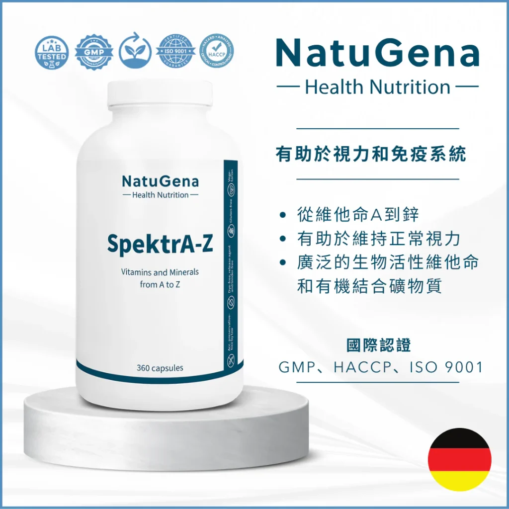 SpektrA-Z 提供全面的生物活性維生素和有機結合礦物質,並結合植物次生物質葉黃素和多酚