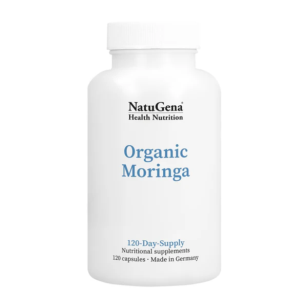 產品描述: NatuGena Bio-Moringa 膠囊含有 500 毫克純辣木粉,是從辣木樹葉中精心提取的最佳有機品質。辣木被稱為“神奇之樹”,富含維生素、礦物質和所有必需氨基酸,是極好的植物蛋白質來源。